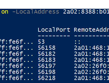 Published 14. October 2017 at 978 × 275 in The new netstat: Playing with Get-NetTCPConnection ‹ Return to post Leave a comment Cancel reply Δ This site uses Akismet to reduce spam. Learn how your comment data is processed.