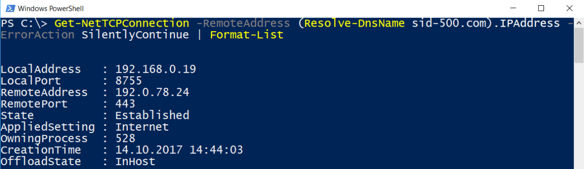 Published 14. October 2017 at 1212 × 352 in The new netstat: Playing with Get-NetTCPConnection ‹ Return to post Leave a comment Cancel reply Δ This site uses Akismet to reduce spam. Learn how your comment data is processed.