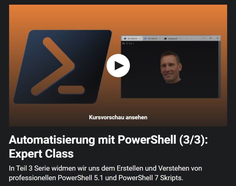 Der 3. Kurs der Serie Automatisierung mit PowerShell ist nun online.