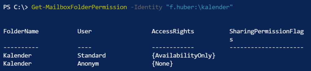 Get-MailboxFolderPermission -Identity "f.huber:\kalender"