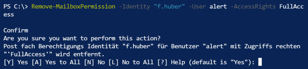 Remove-MailboxPermission -Identity "f.huber" -User alert -AccessRights FullAccess