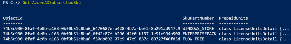 Get-AzureADSubscribedSku