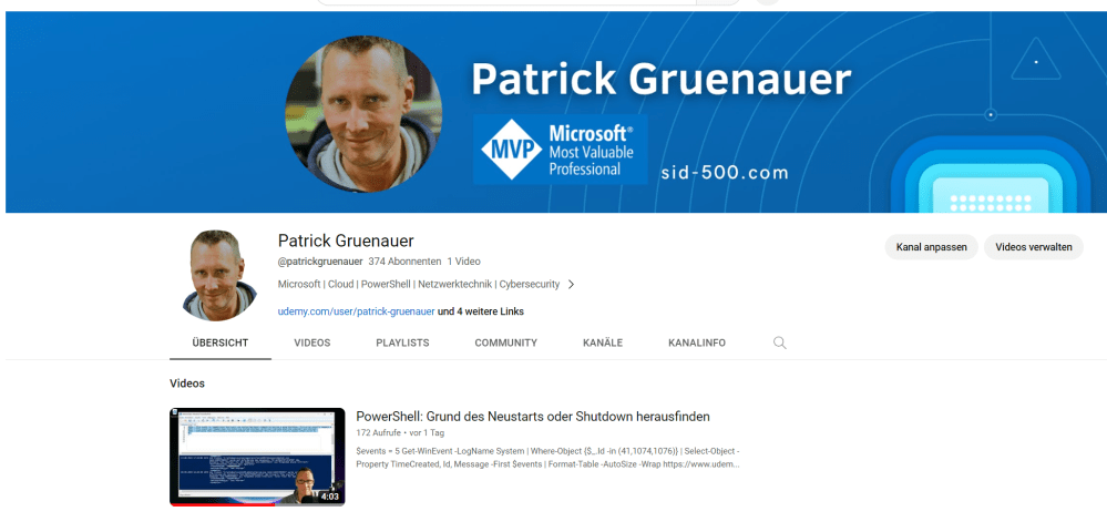 Auf meinem neuen YouTube Kanal werde ich wöchentlich Videos zu den Themen Cloud, PowerShell, Windows Server, Netzwerktechnik, Security und vieles mehr veröffentlichen.