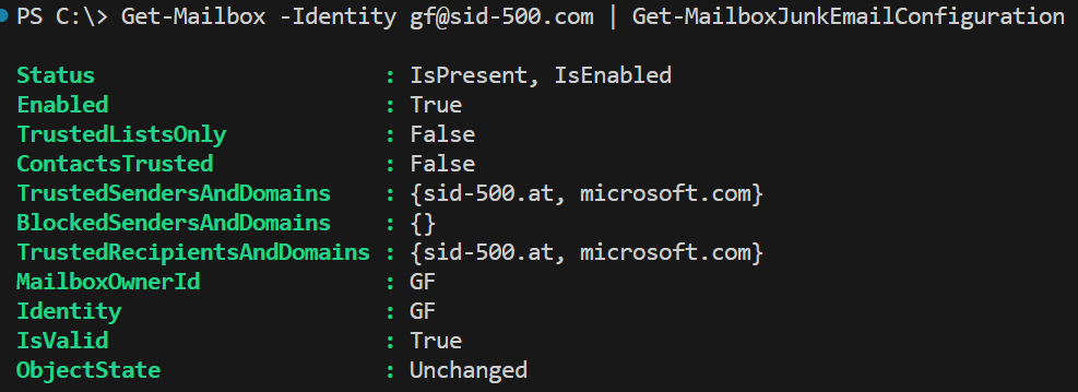 Get-Mailbox -Identity gf@sid-500.com | Get-MailboxJunkEmailConfiguration