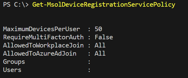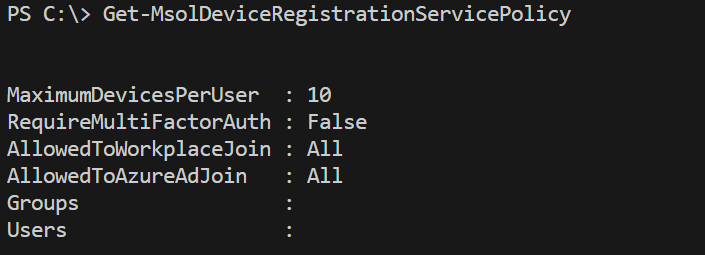 Get-MsolDeviceRegistrationServicePolicy