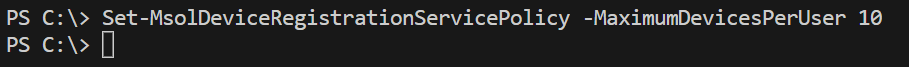 Set-MsolDeviceRegistrationServicePolicy -MaximumDevicesPerUser 50