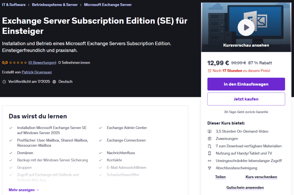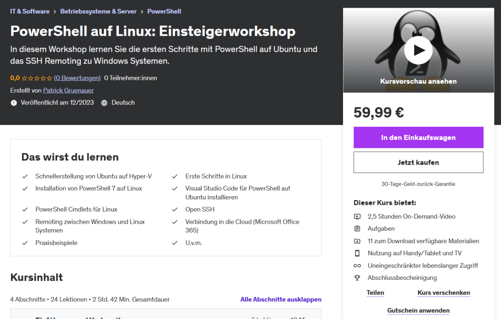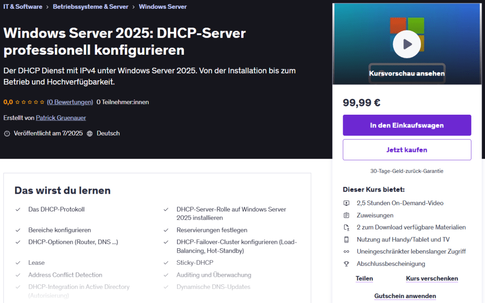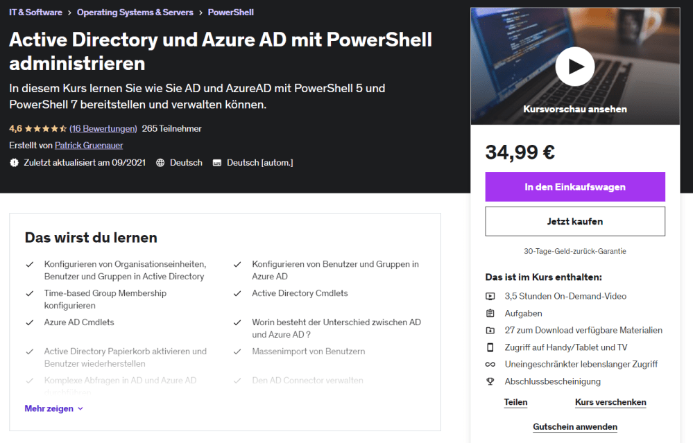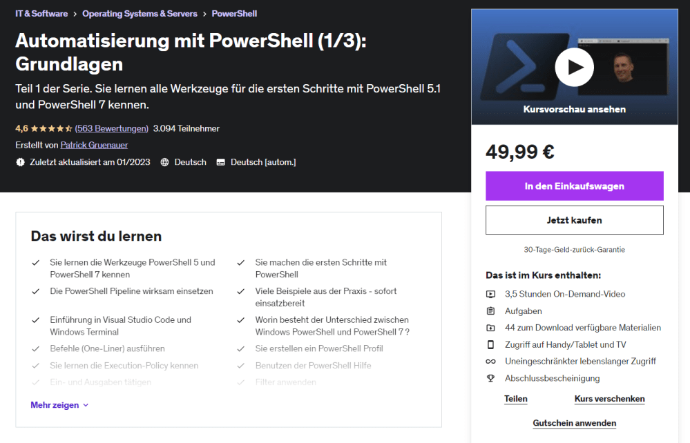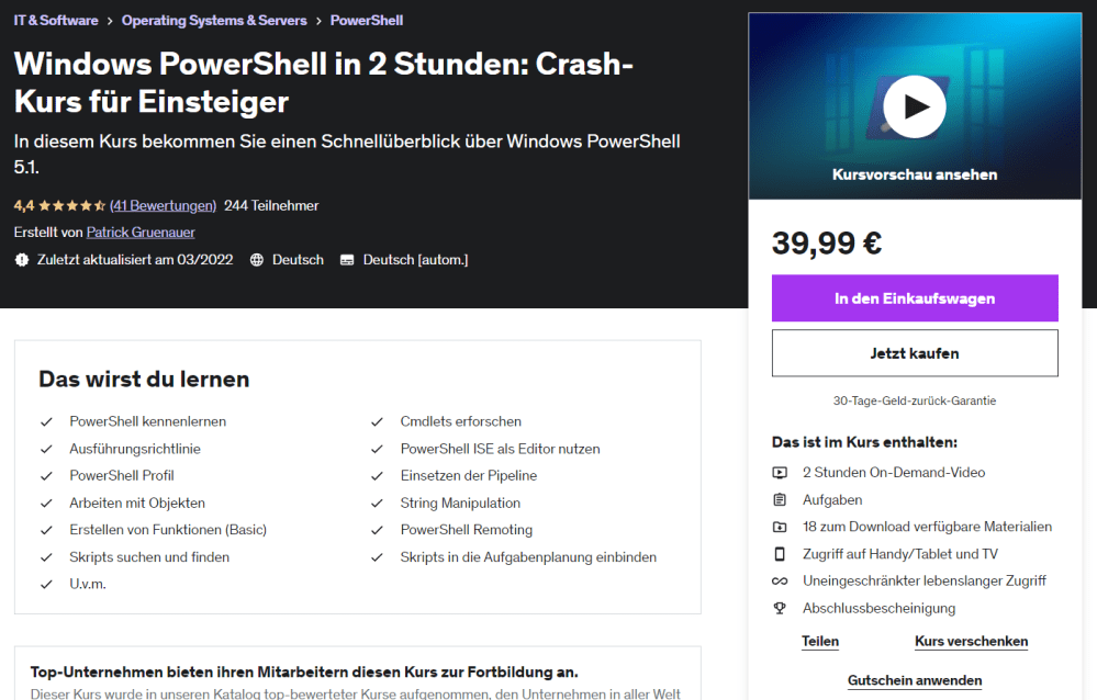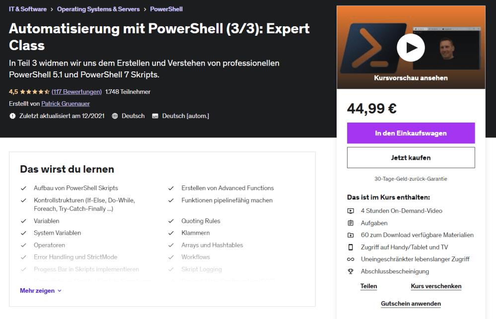 Ich bin als Udemy Trainer aktiv. Meine Kurse können unkompliziert per Klick gebucht werden: