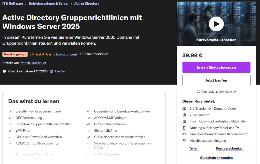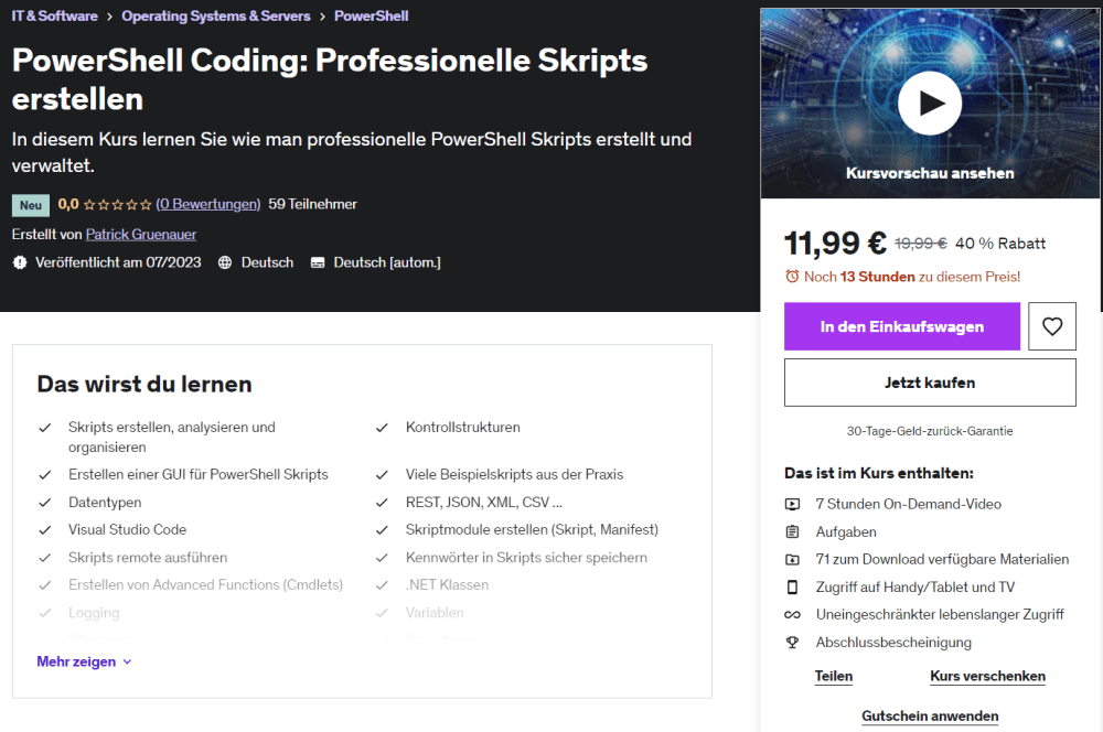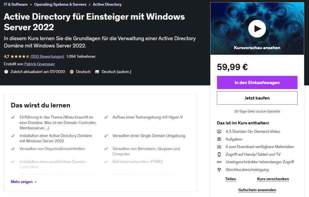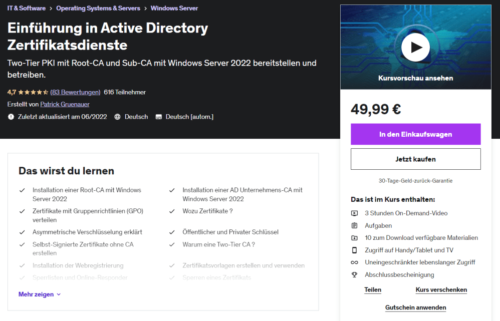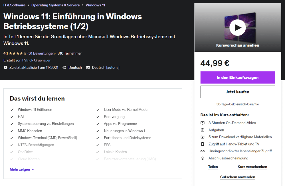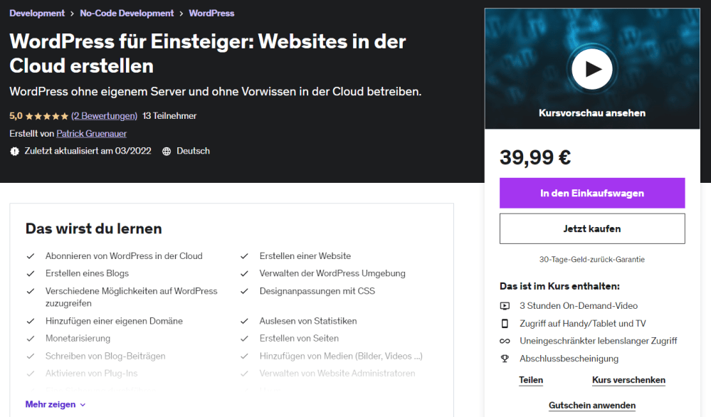 Ich bin als Udemy Trainer aktiv. Meine Kurse können unkompliziert per Klick gebucht werden: