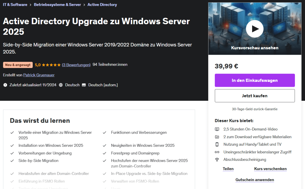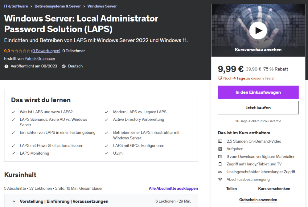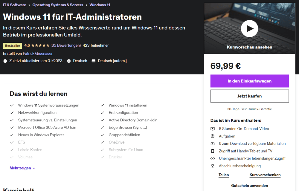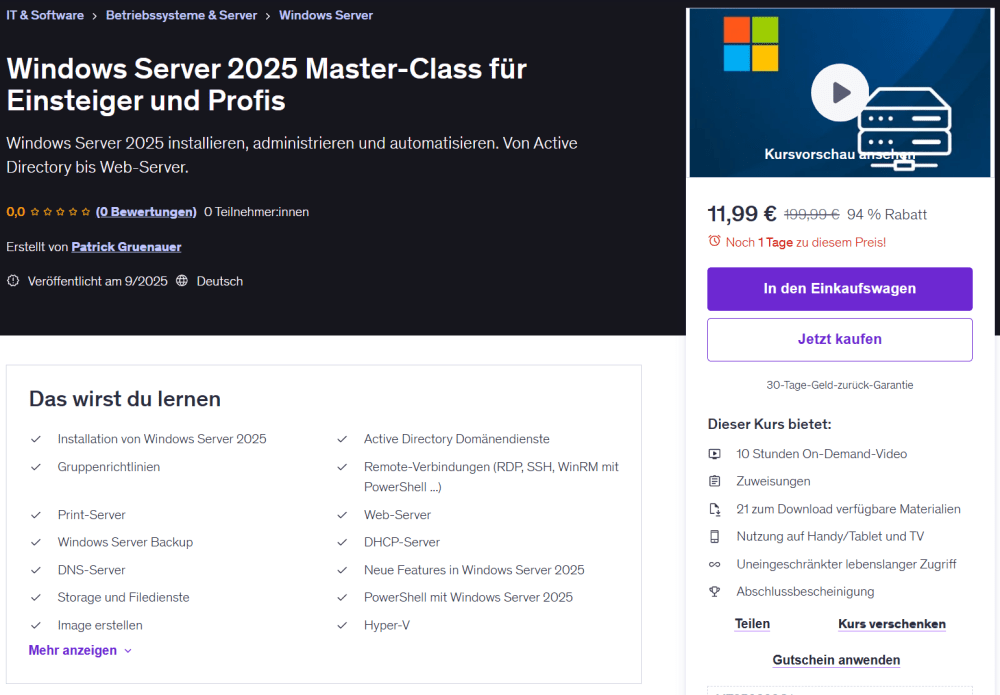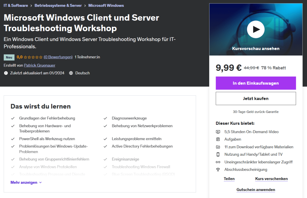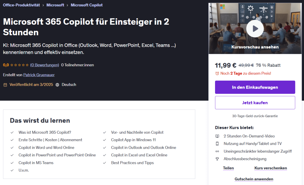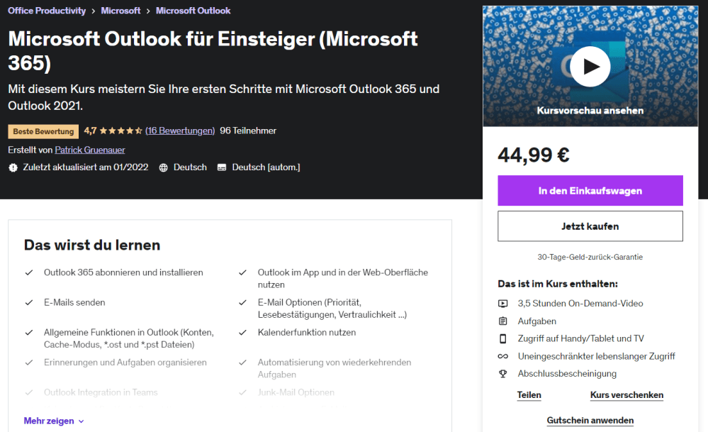 Ich bin als Udemy Trainer aktiv. Meine Kurse können unkompliziert per Klick gebucht werden: