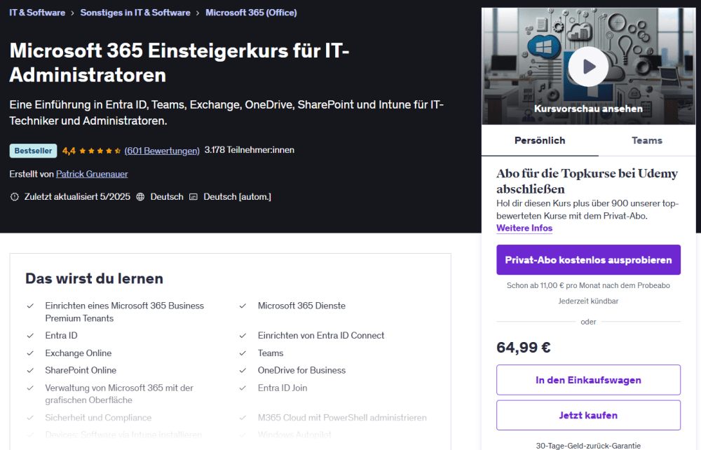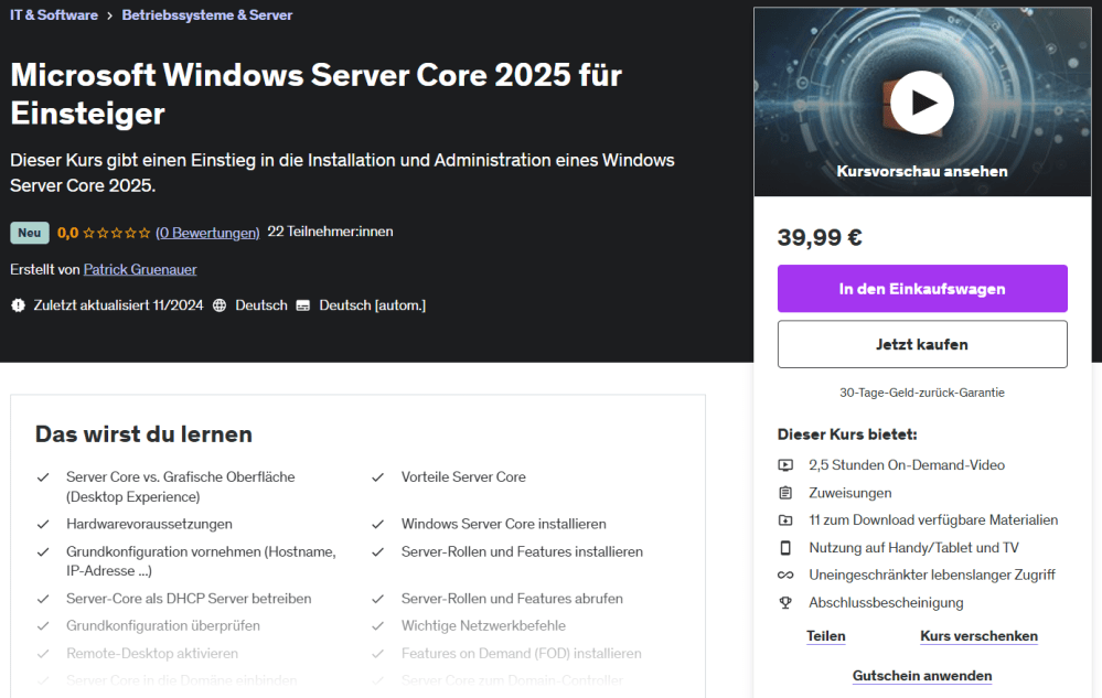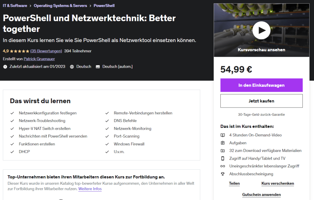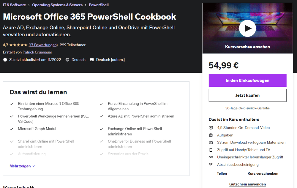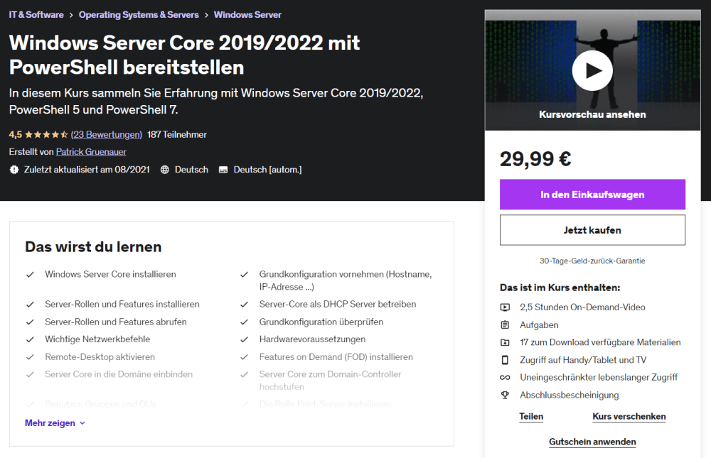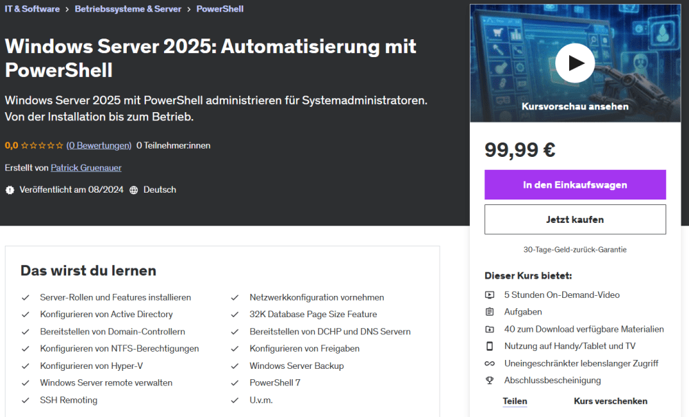 Ich biete auch Schulungen zu Microsoft Betriebssystemen, Microsoft 365, PowerShell und Netzwerktechnik. Diese können in Ihren Räumlichkeiten oder via MS Teams stattfinden.